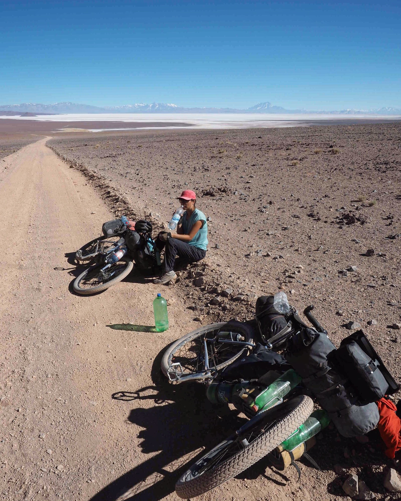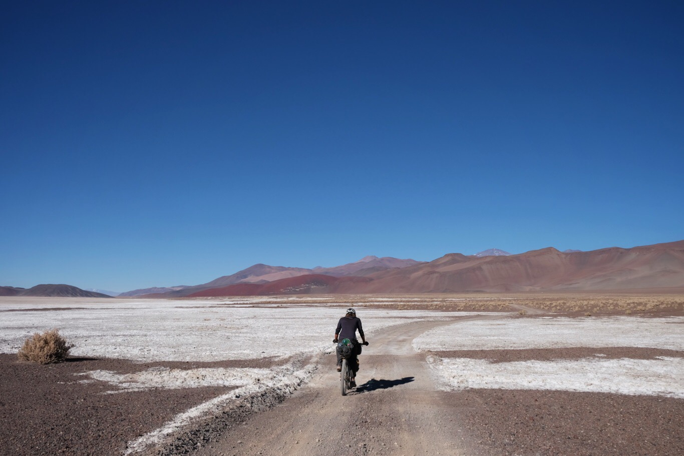 The Puna de Atacama is a windswept, arid, high altitude, desert-like plateau on the border of Chile and Argentina. If you think that sounds a little inhospitable, you’d be right. But when it is not blowing a ferocious gale and exfoliating your already dry and leathery skin with airborne sand, it can be stunningly bright, calm, warm and beautiful. It is known to hurl abuse at the few cyclists passing through (while they hurl obscenities back) but still, somehow, leave them wanting more. Remote, barren and harsh, it’s a place where anything beyond the basic necessities of shelter, water and food fade into the background. It is beautifully simple.